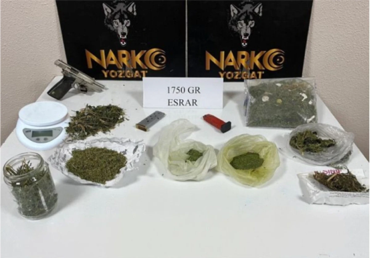 Yozgat merkez ve Şefaatli ilçesinde gerçekleştirilen aramalarda çeşitli maddeler ve materyaller ele geçirildi. Yapılan aramalarda bin 750 gram esrar, 1 adet hassas terazi, 1 adet ruhsatsız tabanca ve 55 adet 9x19 milimetre fişek tespit edilerek muhafaza altına alındı. Ele geçirilen maddeler ve materyaller emniyet birimleri tarafından işlem kapsa-mına alındı. Arama işlemleri sırasında A.A. ve S.A. isimli şahıslar hakkında işlem başlatıldı. Şahısların uyuşturucu veya uyarıcı madde imal ve ticareti suçuna yönelik faaliyet yürüttüğüne ilişkin değerlendirme üzerine Türk Ceza Kanunu’nun 188’inci maddesi kapsamında adli işlem başlatıldı.